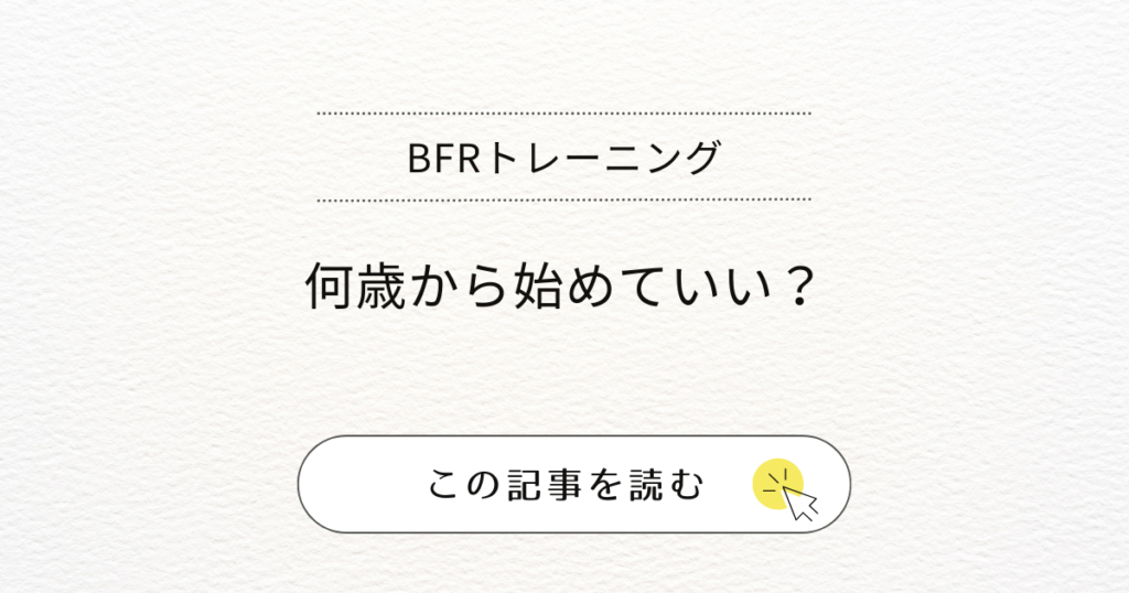 血流制限トレーニング(BFR・加圧トレーニング)に興味はあるけれど、「何歳から始めていいの?」「年齢的に遅すぎない?」と気になる方は多いのではないでしょうか。 この記事では...